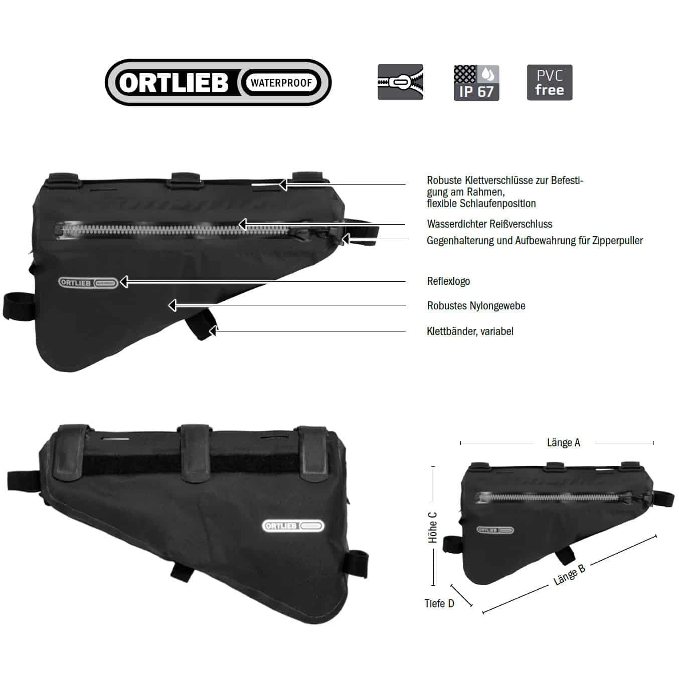 Technische Daten Ortlieb Frame-Pack 4 L Bikepacking-Rahmentasche